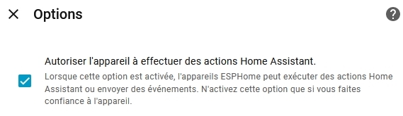Plusieurs fonctionnalités nécessitent de valider une autorisation dans HA sous Appareil --> Options
