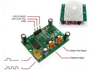 J'ai pris des HC-SR501 qui s'alimentent en 5v mais avec une sortie en 3,3v. Deux mini potentiomètres permettent de règler