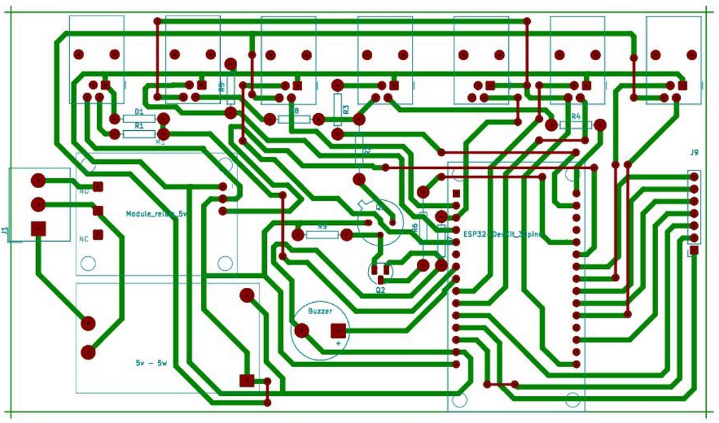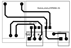 Ci dessous le schéma et le dessin du C.I. Attention a bien souder un fil sur GPIO2 AVANT de placer le module relais sur le C.I. (Petit fil bleu sur la photo)