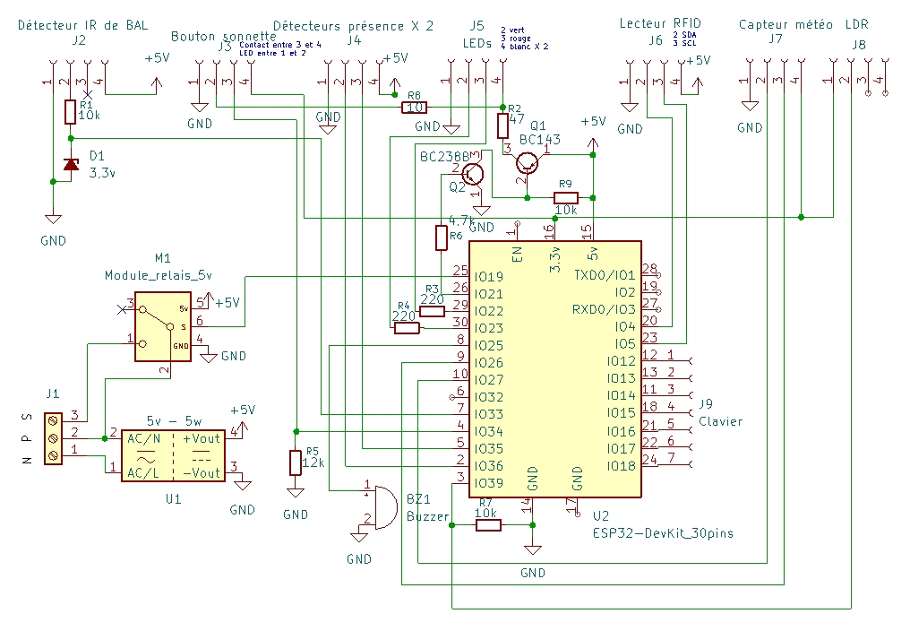 Je vais brancher tout ça sur un ESP32-WROOM-32D installé sur un «devkit» de 30 pins. Un petit module 220v Hi-link délivrera du 5v avec une puissance de 5w.