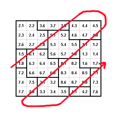 You can remark on this image that the bit 8 of each CW is under the 45 degree parallel diagonal lines. Corner and border conditions are very intricate and different for each