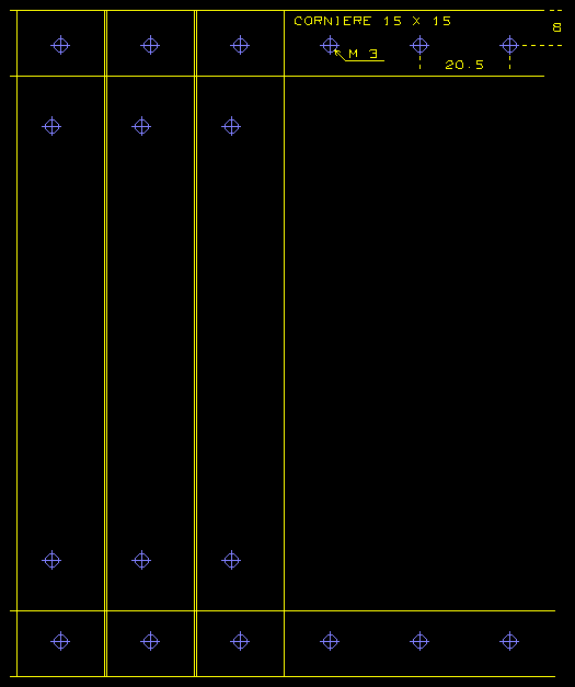 Les deux cornières de 15 x 15 (Epaisseur de 2 mm) sont perçées tous les 20,5 mm à 2,5 puis taraudées à 3. Elles vont supporter les modules. Ces cornières constituent 2 cotés d'un boitier dont la réalisation est laissée à votre imagination !