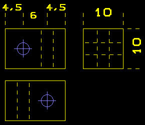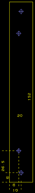 Les équerres sont réalisées en coupant des tronçons de 15 mm dans une règle en plexiglas de section 10 x 10. Deux trous de 2,5 mm sont perçés perpendiculairement l'un par rapport à l'autre et taraudés à 3 mm. Voici le dessin des équerres :