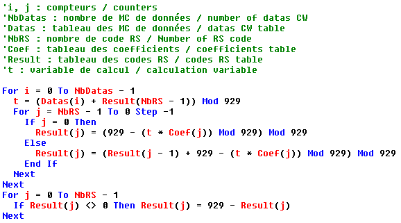 Retrouvez tous les calculs des codes RS des différents codes barre 2D en Visual Basic 6.