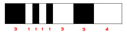 Maintenant que nous savons créer le motif d'un code barre, il nous reste à le dessiner à l'écran et à l'imprimer sur papier. Deux approches sont possibles : Il semble qu'il n'y ait pas de police gratuite pour codes barre PDF417 sur le net. J'ai donc décidé de dessiner entièrement cette police et de la proposer en téléchargement. Le fait qu'il y ait 929 MC avec pour chacun 3 variantes va nous obliger à diviser les 17 bits d'un MC en plusieurs parties. Mais diviser 17 ... hein ... il va falloir ruser. Si l'on considère que le premier bit est toujours "1" et le dernier "0", on peut imaginer un séparateur de forme "01" et il ne reste plus que 15 bits dans chaque MC; on peut alors diviser ces 15 bits en 3 quintets,. Il existera alors 25 = 32 quintets possibles affectés à 32 caractères de la police. Le programme d'encodage sera chargé de transformer les 3 quintets de chaque MC en une chaine de 3 caractères.