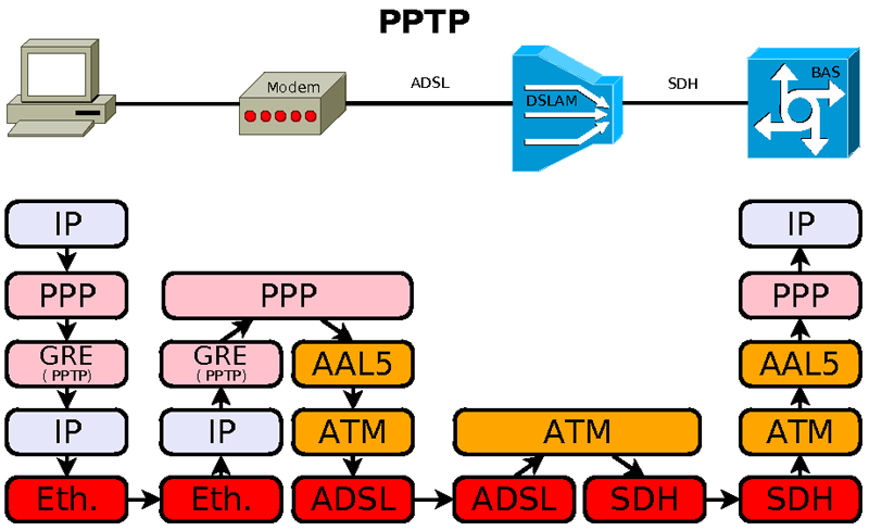( RFC 2637 ) Protocole Microsoft permettant de créer sur un réseau IP un tunnel de transfert pour le protocole PPP. Ce protocole se compose d'une liaison de contrôle basée sur TCP/IP et un tunnel basé sur GRE. Les trames PPP sont encapsulées dans les trames GRE. Ce protocole était surtout utilisé avec les modems ethernet. Son successeur est L2TP.