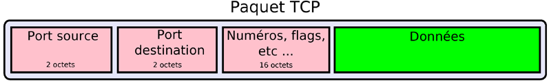 ( RFC 793 ) Protocole de niveau 4 et de type "connecté" utilisé majoritairement au-dessus de IP. TCP gère le transfert des données mais aussi la correction des erreurs, le contrôle de flux, le multiplexage, les connexions et la sécurité. Avant tout échange TCP ouvre une connexion. TCP ajoute un en tête d'au moins 20 octets. Un numéro de séquence placé dans l'en-tête permet de retransmettre un datagramme perdu et également de restituer les données dans le bon ordre.