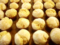 Former des billes d'environ 2 cm de diamètre; les rouler dans le sucre glace et les placer dans les caissettes.