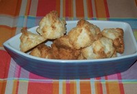 Régulièrement une recette nécessite un jaune d'oeuf; plutôt que de jeter le blanc je le met au congélateur dans un petit godet permettant ensuite de le démouler. J'ai donc plein de «glaçons de blanc d'oeuf» au congélo. Il fallait bien les utiliser alors voici venir les petits congolais ...