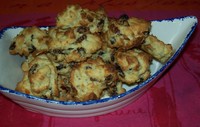 Faire mousser le beurre fondu avec le sucre. Ajouter les noix et la farine, et mélanger.