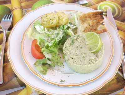 Éplucher les avocats, ajouter le jus de citron et réduire en pommade.