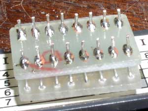 C.I. puis on y soude 8 queues de résistance. On enfile alors le second circuit en