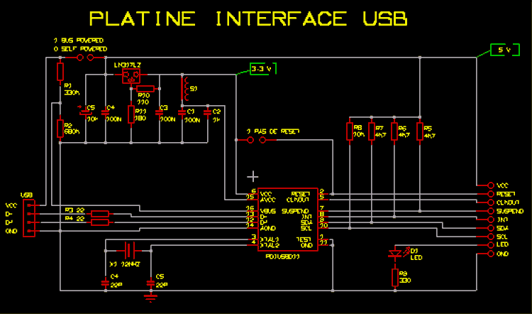 circuit USB PDIUSBD11N (Si boitier CMS, faire une platine de conversion)